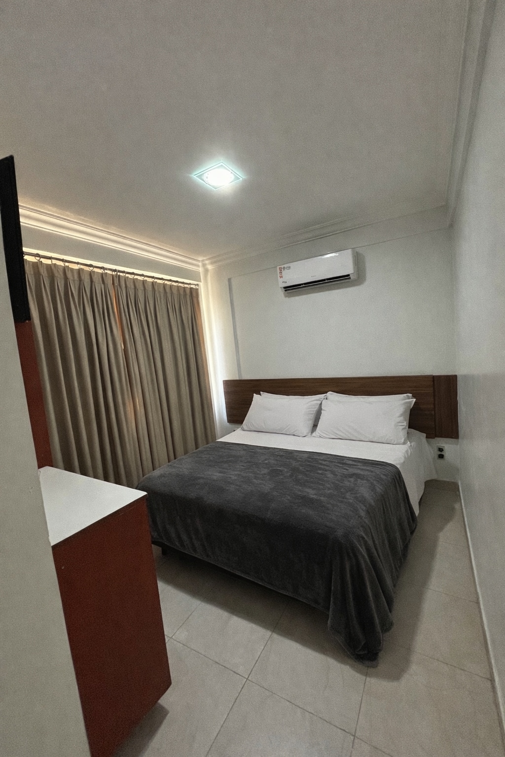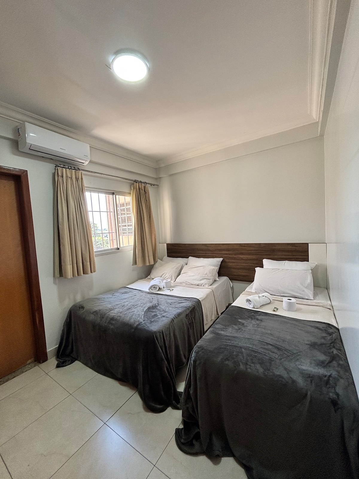 Excellent hotel room in a central neighborhood in Goiânia, close to the 44 region - fashion hub, universities, bus terminal, hospitals, public agencies, markets, bars and restaurants. The room has a private bathroom, air conditioning, shower, hand shower, hairdryer, work bench, minibar, closet, hangers. We offer a complete set of linens: sheets, pillows, blankets, towels. Complimentary breakfast, parking, Wi-Fi, toiletries.