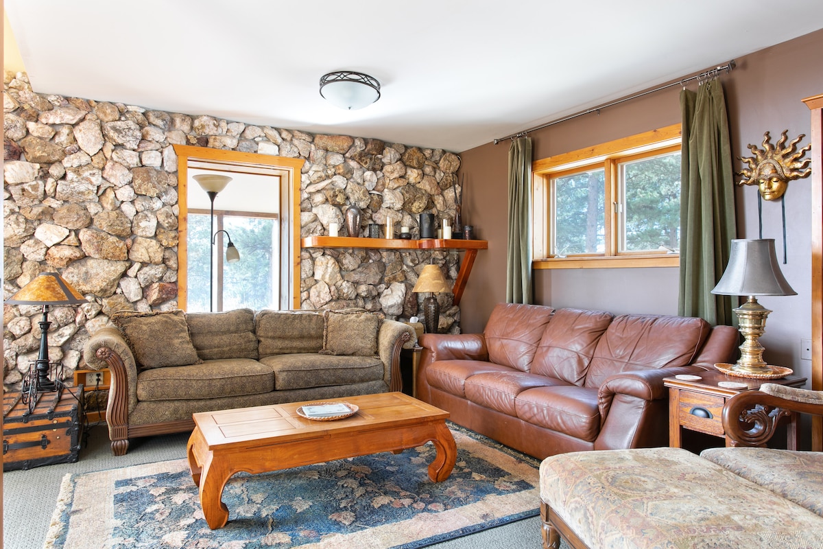 It's time to unwind and enjoy yourself at Moose Meadows Cabin, a quintessential one bedroom log cabin backing up to National Forest. Enjoy your mornings on the large, sun filled deck or spend the afternoon hiking out the back gate into hundreds of acres of National Forest. In the evenings head into downtown Nederland for the best restaurants around - the options are endless! 15 mins to Nederland, 25 mins to Eldora Ski Resort, 15 mins to downtown Black Hawk/Central City and 30 minutes to i70