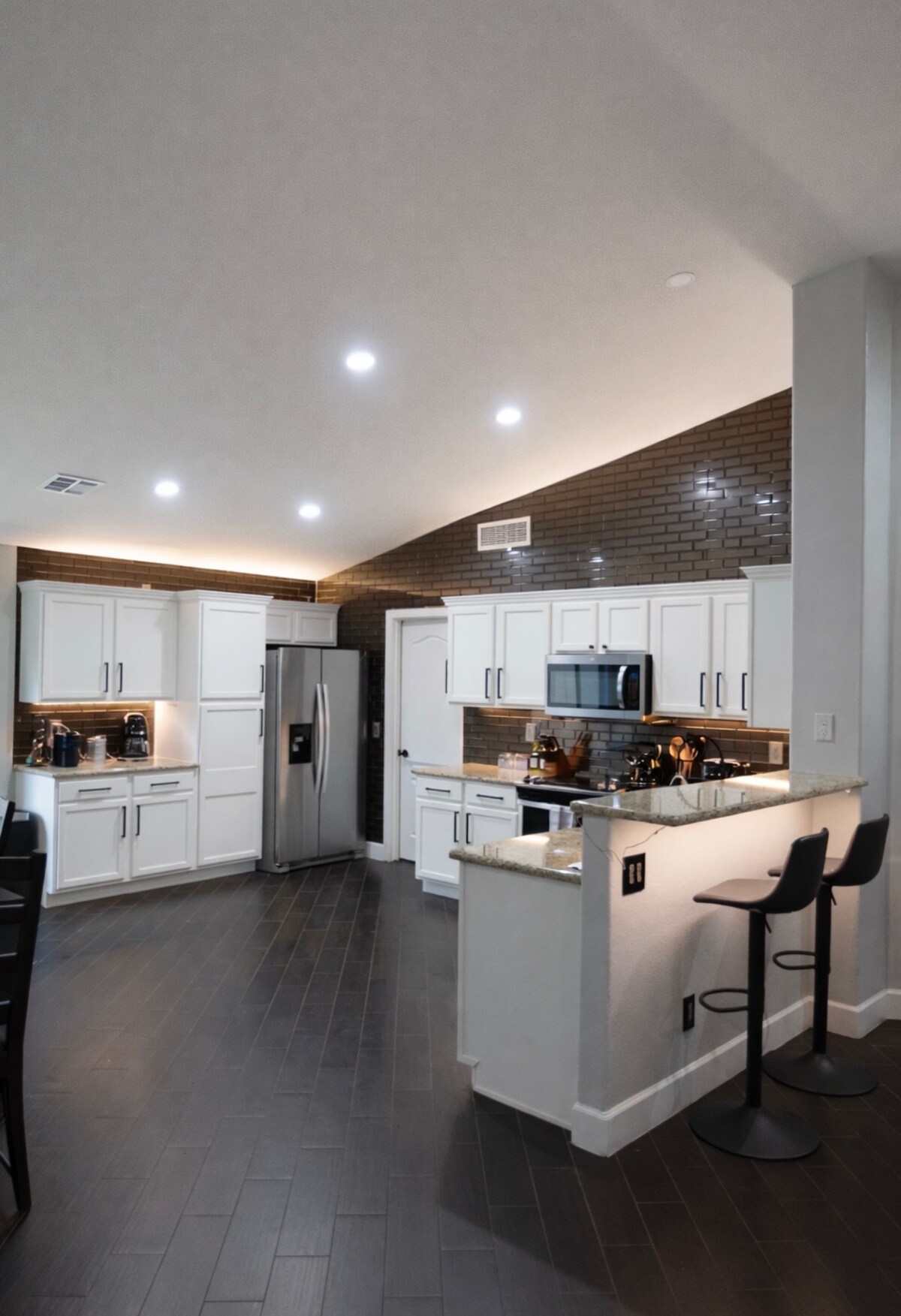Breathtaking views in all directions! Feel on top of the world. Accommodates up to 12 guests. Spacious open layout, 5500 sq ft custom-built home in Fountain Hills. 4 bedrooms, each with private en-suite baths. Every room opens to a balcony with sweeping 100-mile views. Outfitted with premium appliances. Resort-style backyard is a showstopper. Heated pool available (extra fee). Greet each day with a stunning sunrise. Strict NO PARTY policy in place.