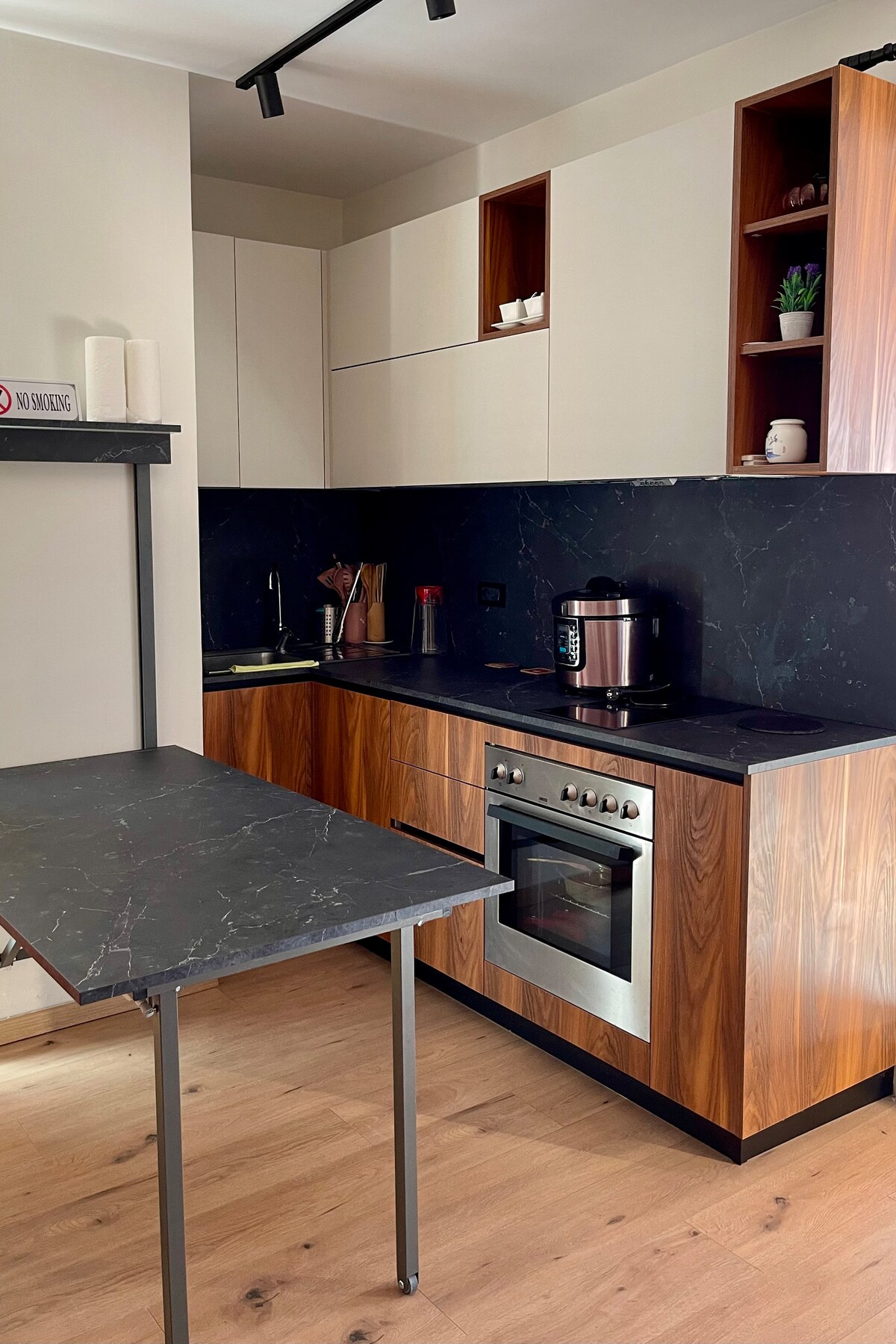 All the craftsmanship and creativity of one of Albania’s top interior design studios has been poured into this apartment. A space infused with Mediterranean simplicity, minimalist elegance, and a subtle “vacation vibe” in every corner. All of this is wrapped into 70 m² of comfort—including a generous 10 m² balcony where you can enjoy views of the aquapark and the rolling hills surrounding the village of Golem.