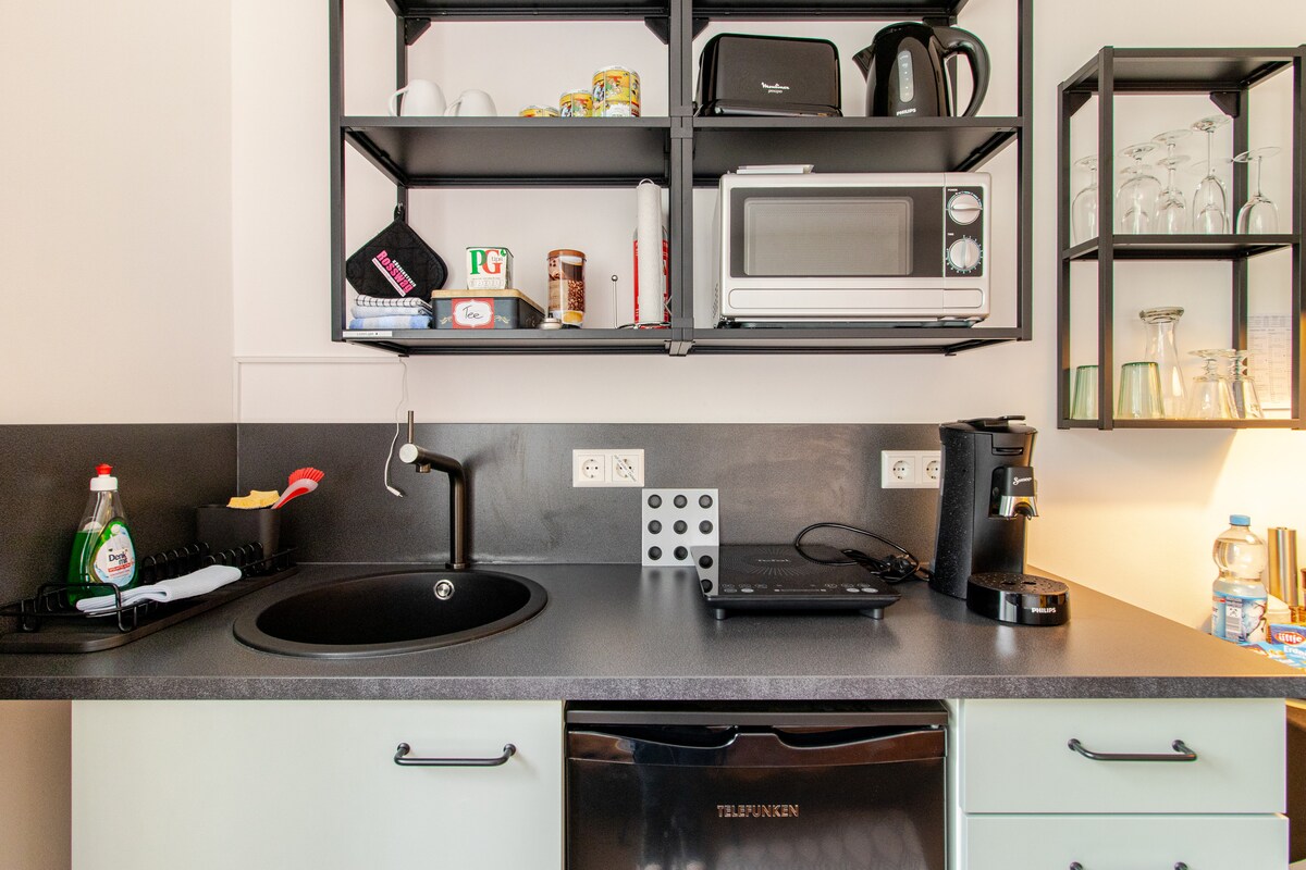 Very nice, newly renovated and stylishly furnished 50 sqm apartment in a quiet location for 2 people. Upper floor. The city center, city railway, as well as many restaurants are within walking distance in just a few minutes. Bedroom, living room with sofa bed, kitchen, bathroom, entrance area with cloakroom. Third person on request. Washer & dryer on request and for a fee!