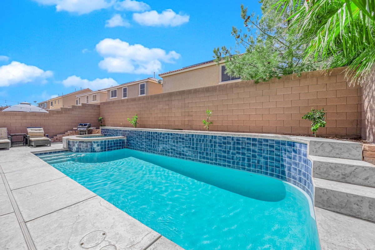Spacious 3-bedroom house with a pool & Hot Tub, featuring a private backyard oasis perfect for relaxing under the sun. Fully stocked with plush towels, cotton sheets, quality mattresses, and all the kitchen utensils needed for any level of cooking. Just a 16-minute drive to the famous Las Vegas Strip, and close to convenience stores (supermarkets, restaurants), parks, and the Lakes neighborhood. Nestled in a quiet, safe neighborhood just minutes from Summerlin.