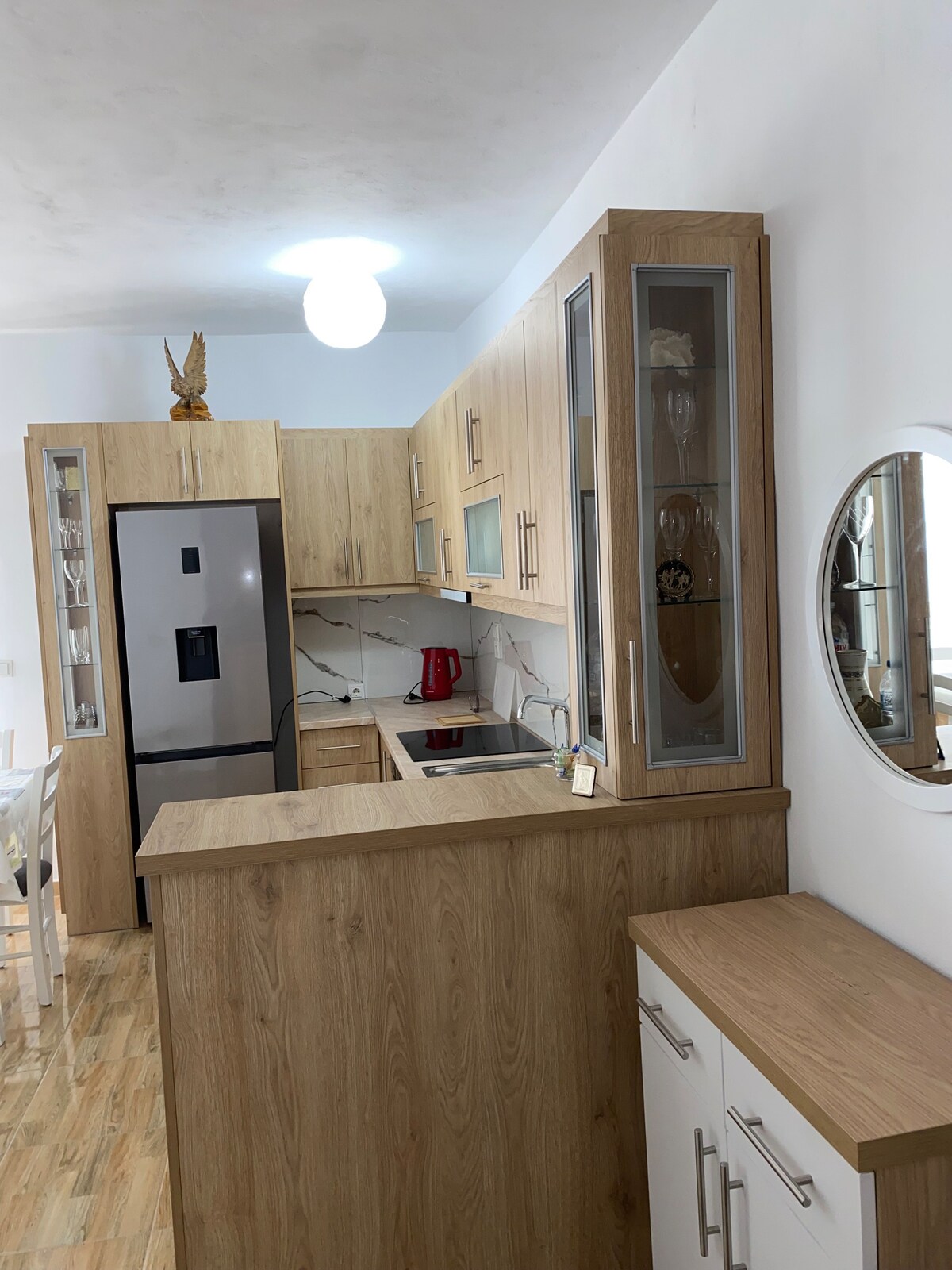 Have you ever imagine waking up from the sound of the waves in a big, bright apartment with a Maldives alike seaview? This is a very spacious apartment in the very first line from the sea. The apartment is furnished with modern furnitures and appliances. It is located in the port neighborhood of Saranda in a 10minutes walk from the center.Relax in a peaceful enviroment and enjoy the endless blue.