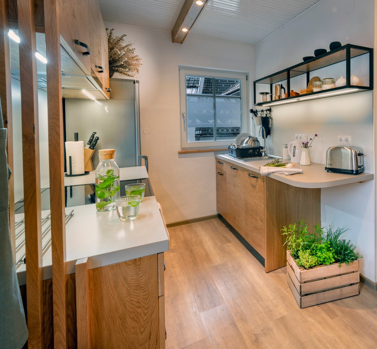 The house Gabrijel is situated at a peaceful location in an unspoilt nature, away from the city hustle and bustle. Here, you can enjoy the peace, quiet and fresh air. The Jezernica creek, which flows past the house, creates a pleasant babbling sound. The small kitchen is spacious enough for you to prepare homemade teas and proper Slovenian coffee. Making yourself one of these drinks, you can relax on a lovely terrace with a view of the neighbouring pasture where horses graze.