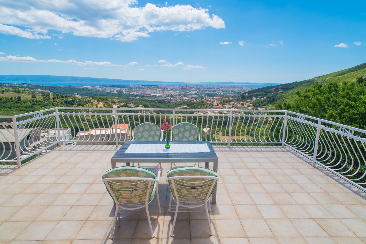Holiday house above Split with peaceful holiday retreat. House offers privacy and intimacy with breathtaking panoramic view. The house is build a month ago, set on 600 m2 (outdoor) with a beautiful garden, sunny terrace with jacuzzi and sunbeds and amazing view of the sea and Split and a big swimming pool. Indoor it offers 380 m2 on 2 floors, with 4 bedrooms, dining room, living room with modern technology and wi-fi. There is also a space where you can exercise (gym) and a pool table.