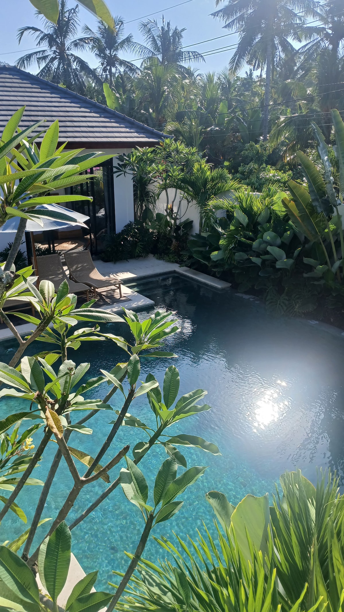 A quite house next to a rice field with a village atmosphere and a sunrise view that you can enjoy every morning. You can also do swimming or bike riding will be available on the premises for your activities of the day.