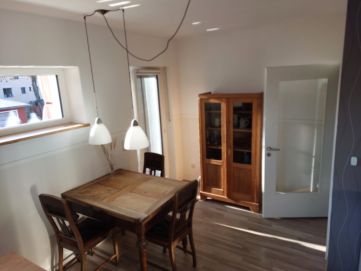 Fully furnished apartment with one bedroom, open dining/living area, and a large bathroom incl. washer-dryer. Fully equipped kitchen. Underfloor heating and living room ventilation. Private parking is right by the house. High-speed Internet and 2 x LED smart TVs. Very quiet location in the middle of the old town of Grafenwöhr. Supermarket, bakery, restaurants, bars and pharmacy within walking distance in less than 3 minutes.