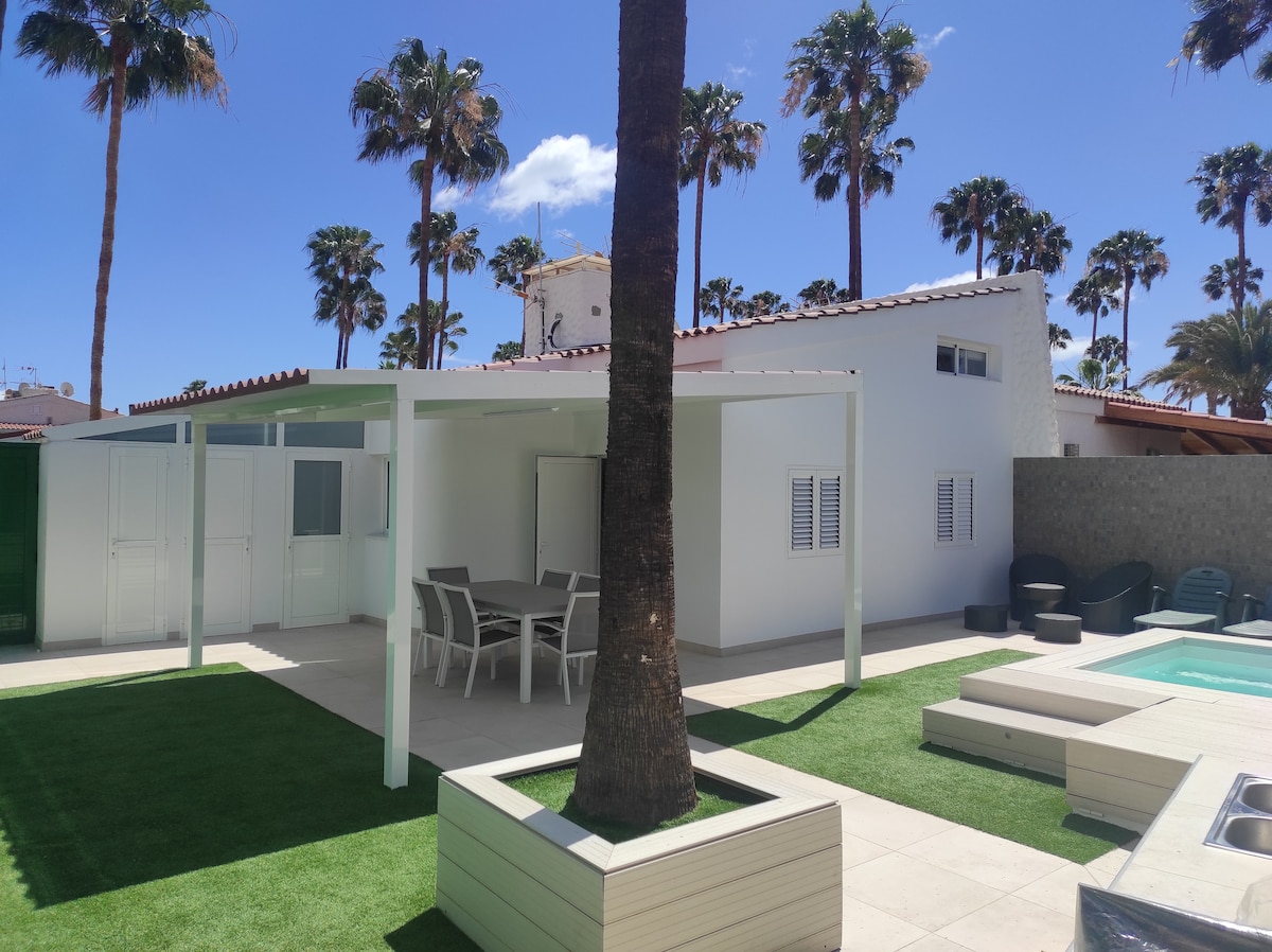 Luxury Boutique Casa "Ibiza style decor"corner bungalow, located in the heart of Playa Del Ingles, few minutes-walk to Yumbo center, close to everything very quiet area,. During the hot days, guests can enjoy the swimming pools in the common area, when the night comes, you can enjoy the jacuzzi in the garden. Your hosts and family will do best we can to make your vacation to a good memory on our fantastic island. We speak and understand English, Spanish, German, Swedish, Norwegian & Danish.
