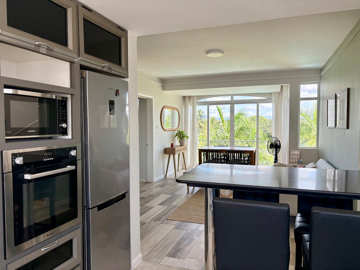 Modern apartment of 90m2, 2 bedrooms, 1 bathroom & toilet, with a terrace. Located 1 minute from the 5*Lux Grand Bay Resort, casita bay, Merville beach & Pereybere beach. Ideal for a couple with 1 or 2 children looking for comfort and located near the best beaches. There is the Roof Top with seaviews, and restaurants and supermarkets are 2 minutes away by car. The residence has a Swimming pool, secured parking and elevator. FREE drinking water dispenser- NO need to buy bottled water