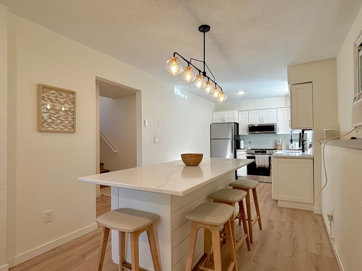 Cozy, modern, and newly renovated, this 2-bedroom, 1-bath unit is centrally located, just minutes from the hospital and campus. The space features an open kitchen layout with quartz countertops, a fireplace, and a smart home setup. Stay productive at the work-from-home station with dual large monitors, or relax in the living area and enjoy your favorite shows on the Smart TV. The unit comes fully equipped with a Keurig, cookware, and all the essentials for a comfortable stay.