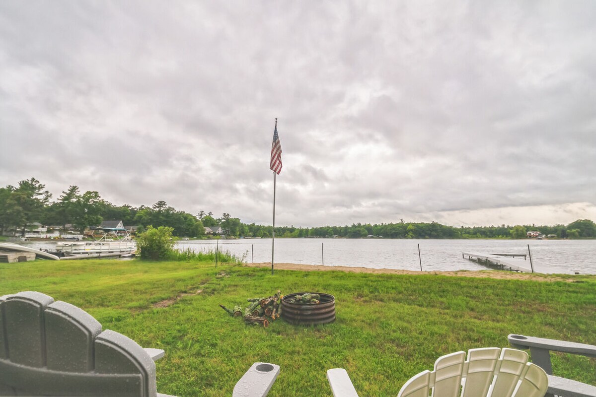 Nestled in a small cove on a large lake, this waterfront cottage has been completely renovated. It has 66' of private shoreline; an elevated front deck plus side patio; and stone bonfire pit & gas BBQ grill. Guests also get FREE & exclusive use of pontoon boat, 2 kayaks and paddle boat, plus private dock (early May through late October, weather permitting). Swan Cottage is very dog-welcoming. The yard is not fenced, however we provide ground stakes & cable ties.