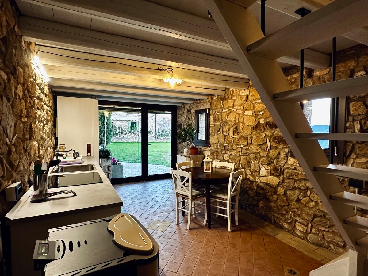 Casa Francesca is a beautiful farmhouse from the early 1900s surrounded by a private park, perfect for those looking for tranquility and contact with nature. The farmhouse is a beautiful independent open space of over 60 sqm with a kitchenette, a living room with a fireplace and stove, a large bedroom and a bathroom. In the garden, the barbecue area with gazebo is available for grilling and relaxing in the greenery. There is no shortage of the vegetable garden with fruit trees and chickens to taste the flavor of country life.