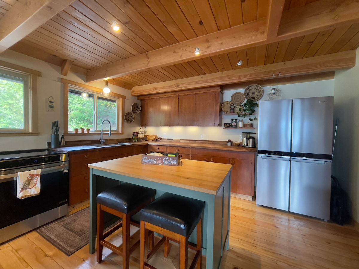 We’ve upgraded our cottage but it still has that cozy cabin feel that guests love. Private trail across street is a 5 min. walk to the beach. Large backyard with firepit, horseshoes & chairs. Enjoy a break with an evening fire or Netflix movie (Roku smart TV). Log wood/open beams interior with AC/Heat from new mini-split. Comfortably sleeps 3 adults/3-4 children. Propane grill, crab pots, clam guns, board games, patio set, beach chairs/towels/blanket, bikes and kids sand toys onsite.