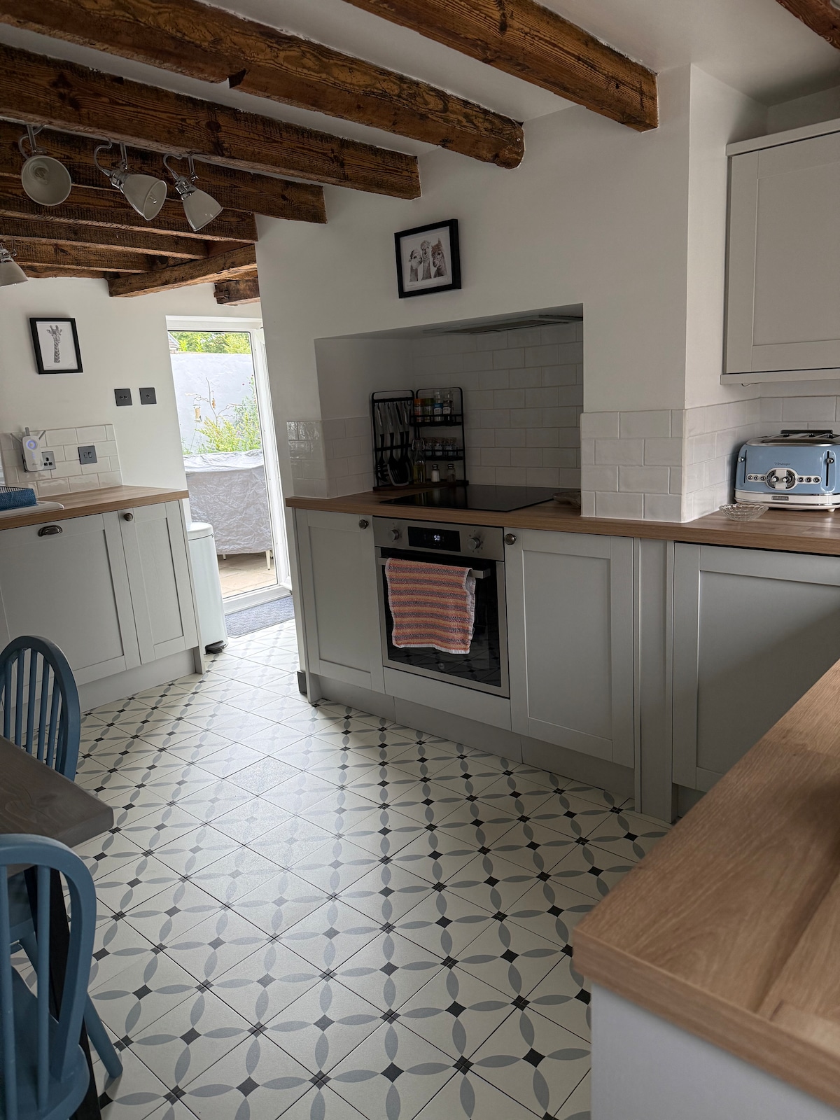 The Barrel house has been lovingly restored to provide a stylish, multifunctional space for Airbnb guests. The vaulted ceiling adds to the feeling of space. All windows are double glazed and a velux roof window allows the daylight to flood in. Outside there is a private patio area with a bistro set for outdoor dining or enjoying sundowners. Nearby is the village shop, popular butchers and local pub. There are plenty of walks to enjoy nearby.