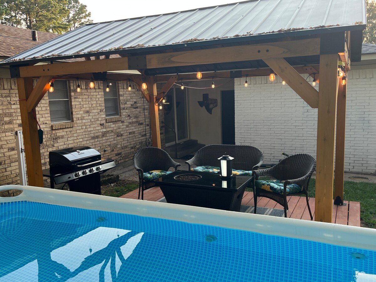 6 BR in Piney Woods w/hot tub and stocked POND