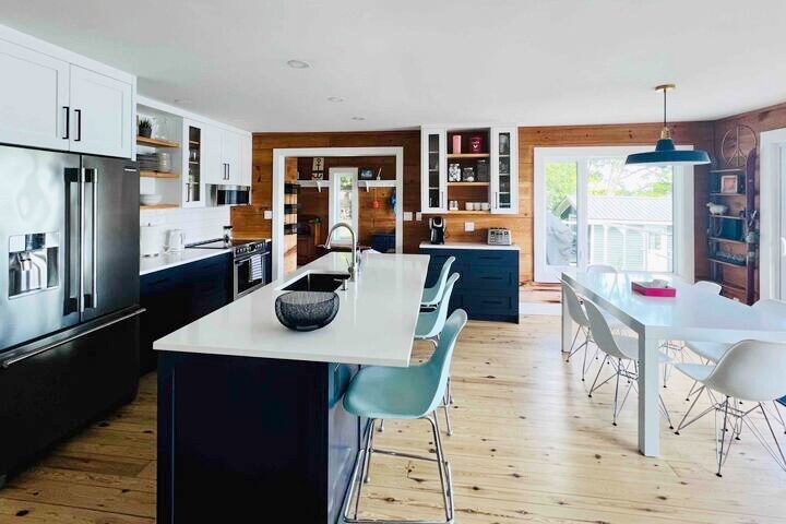 Welcome to Bayview Oasis, our luxurious lake house on Georgian Bay. Enjoy breathtaking water views, a modern kitchen with high-end appliances, a cozy basement with a pool table and bar, and a master suite with top-notch amenities. Outdoors, relax in the cabana with a pizza oven, fireplace, picnic tables, spacious patio, hot tub, and our new custom pickleball court. Whether it's a romantic getaway or family vacation, Bayview Oasis is the perfect retreat.