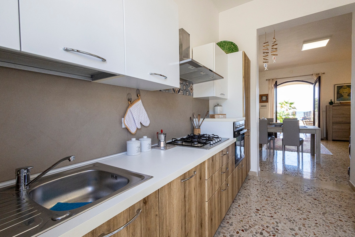 You will stay on the ground floor of my villa, a 3-minute walk from the sea, consisting of two separate apartments. *You will not share all outdoor spaces with other guests*. The apartment has a large outdoor space with a dining table, sofas and deckchairs, and private parking. The villa is located in one of the most picturesque areas of Scopello, 200 meters from the beautiful beach of Cala Mazzo di Sciacca, and is surrounded by a large tree-lined garden and a picturesque sea view