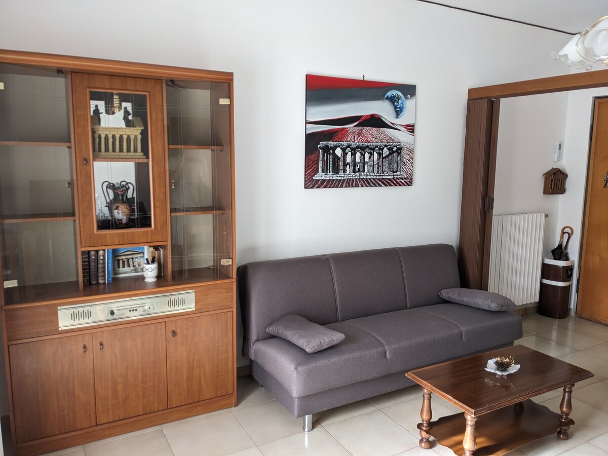 Independent studio of 45 square meters in the seaside town of Agropoli, equipped with double bed and sofa bed, equipped kitchen area, bathroom with shower. Suitable for couples and young families. It offers a relaxing stay, ideal for archaeological tourism (Paestum, Velia, Pompeii, Herculaneum), trekking routes, excursions on the Cilento and Amalfi coast, Naples tour. It has a washing machine in an external laundry room. Environmentally friendly services. CUSR 15065002EXT0416