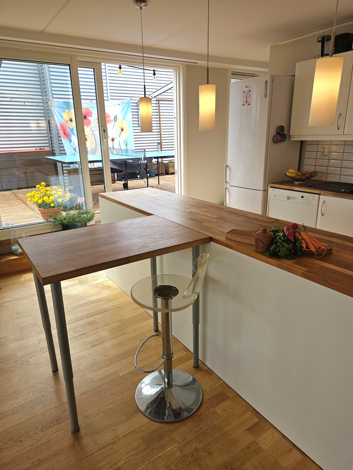 Welcome to a cozy and spacious 1-room apartment of 31 sqm with an enclosed veranda of 13 sqm. Here is a kitchen with everything you need, from the morning coffee brewed in a moccamaster to a selection of wine glasses. Sleeping alcove with double bed, sofa that is also good to lie in and the possibility of an inflatable mattress if needed. The porch is like an extra living room with bird chirping during the day and bat squeaking at night. Short drive to the countryside and there is public transport to the city center around the clock. Quiet and safe area.