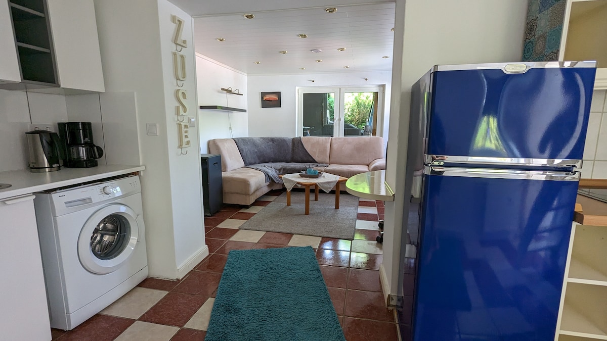 Take it easy at this unique and tranquil getaway. Centrally located with short distances to Düsseldorf or the entire Ruhr area, this is a perfect starting point for your trip. The bedroom has a ceiling height of only 1.35 m. So you should be a little athletic if you want to go to bed at night. The rest of the apartment is normally accessible and usable without further restrictions. We recommend wearing slippers. Especially in winter, the tiles can be cool