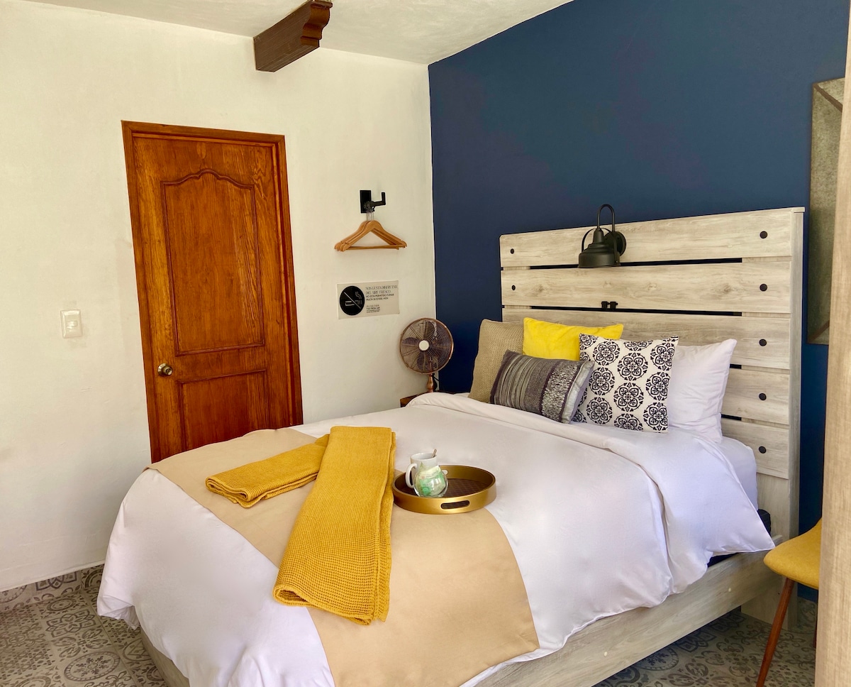 Space with style. Comfort, cleanliness and elegance characterize it. It is located in the historic center on Campanero Street, easily accessible and without going up alleys. You will be amazed! In 1 minute walk you will be in the Juárez Theater and the main garden. It has a separate entrance, private bathroom, living room, 40"TV, two balconies and anti-noise windows. With just open the doors you will enjoy the view of the street El Campanero. If you celebrate something special, we can arrange it!