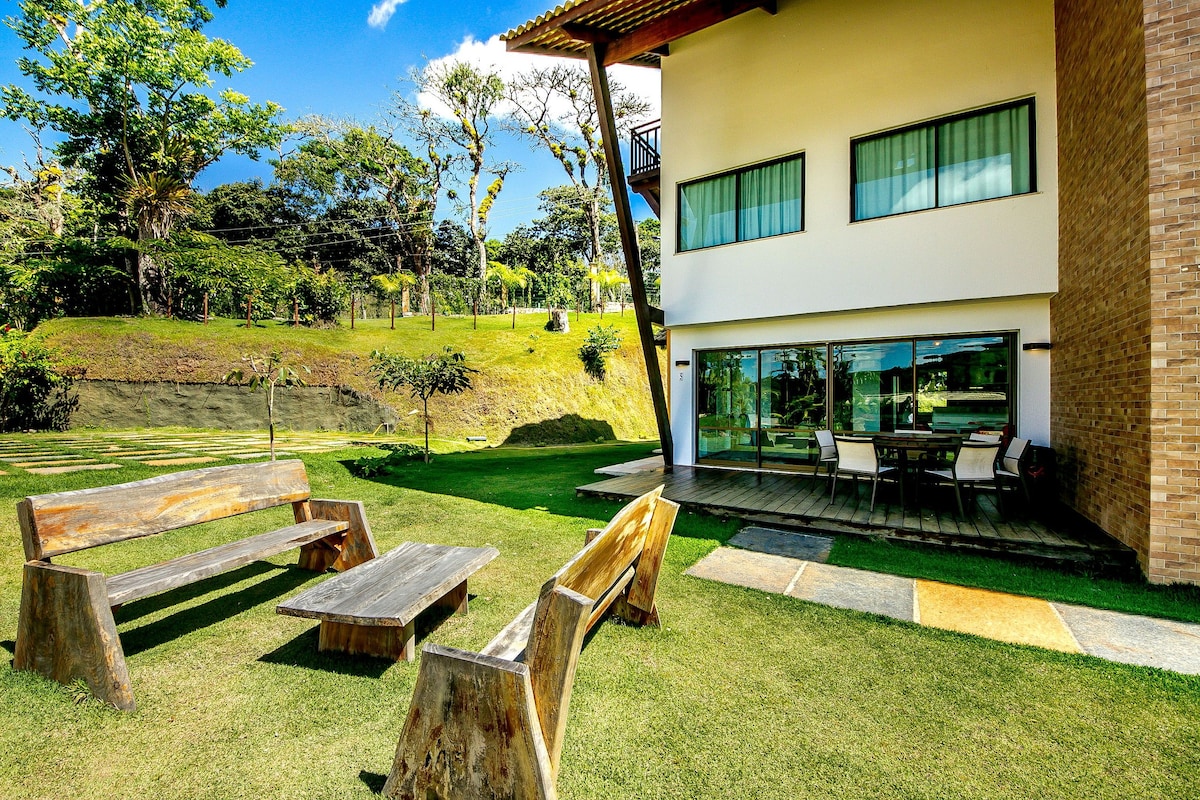 With a privileged location (6 minutes on foot and 2 minutes by car), the property is a duplex with 4 bedrooms that comfortably accommodates up to 10 people. The difference for those staying at Residencial Recanto das Palmeiras is being able to walk to the center and being close (12 minutes by car) to the main waterfalls (which are a sight to behold). The common area has a swimming pool for adults and children, a sports court, a deck with barbecue and a beautiful green area!