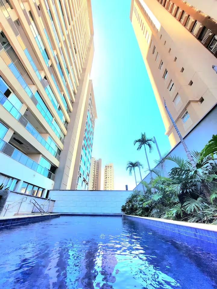 A acomodação perfeita para quem busca conforto, segurança, fácil acesso ao aeroporto GRU(9km), e na melhor localização da cidade. Possui: -cama queen -tv smart -ar condicionado(quente/frio) -wi-fi -mesa de escritório -sofá-cama -cortina black-out -varanda -cozinha equipada -roupas de cama/banho -infraestrutura completa no condomínio A piscina (Obras de 09/03 a 18/04/26) na cobertura com a vista + deslumbrante da cidade. Possui vaga de garagem inclusa/coberta. Não aceitamos PET.