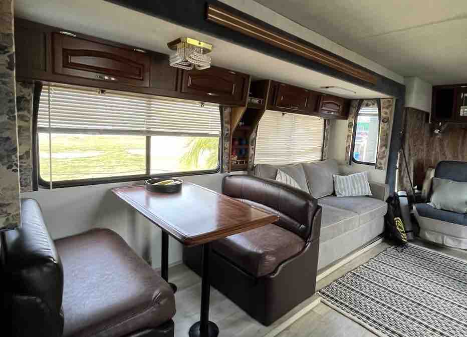 An ocean-front option for adventurous travelers—the feeling camping with comforts of home! Rental includes day passes to Playa 14 for all guests(valid for every night that you stay) where you’ll find delicious food & drinks, kid-friendly shallow pools or adult-only swimming area/ cabañas. The RV comfortably sleeps 4 guests, with a king-sized loft bed & a queen-sized bed in the back bedroom. Couch & dinette can be converted into sleeping spaces for children.