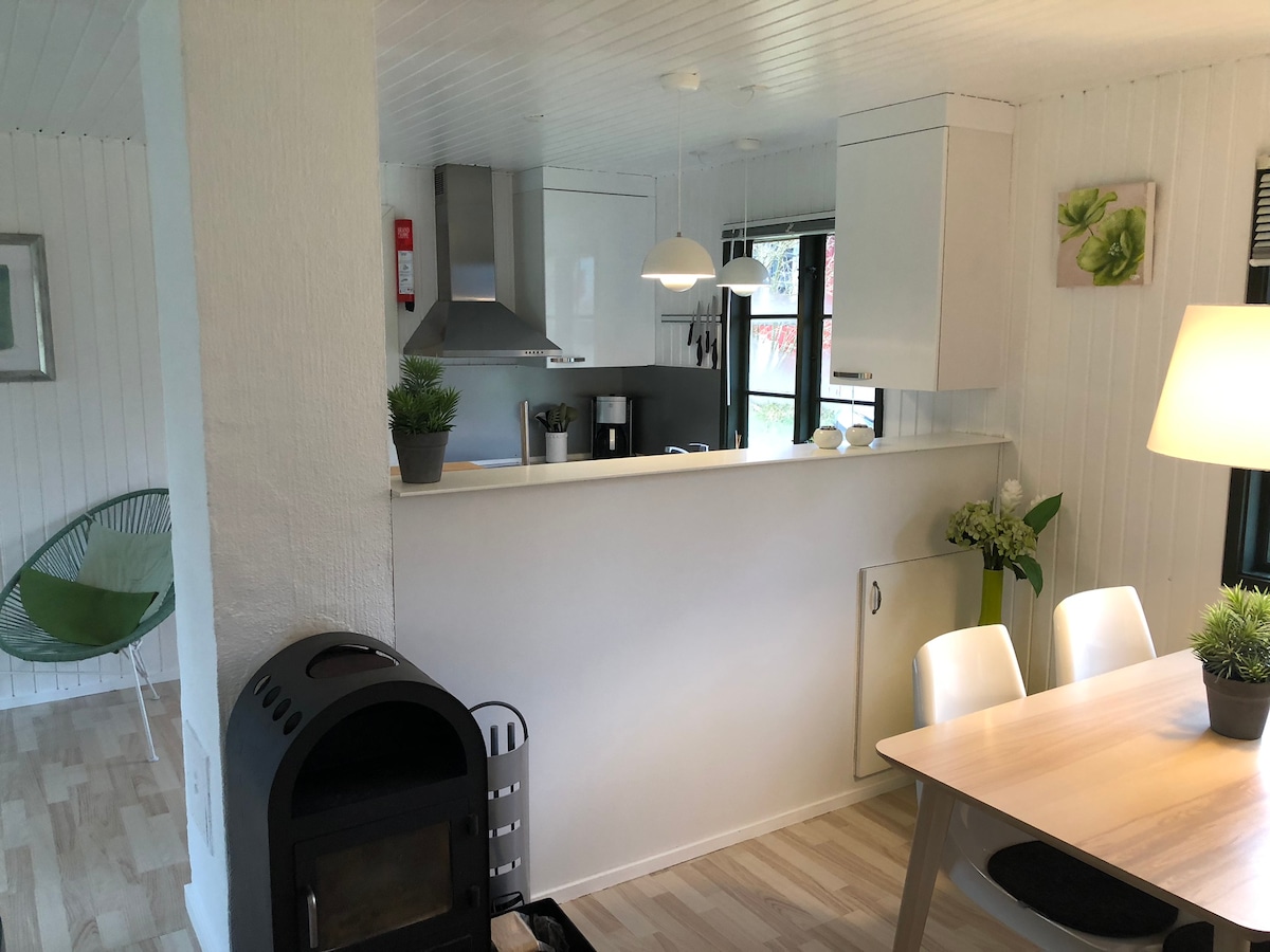 This holiday home is located in a holiday village with 52 houses, divided into 5 clusters. There is a shared swimming pool (remember towels for outdoor use), playground, common house, laundry room, parking space, and waste container. All grass areas are shared. Do NOT park at the house. The house is for 4 people, but by arrangement a fifth person can be allowed. I am not a big fan of pets, but by agreement it can be arranged. It is about 300 meters to the beach. The town is located in a forest, with plenty of nature.