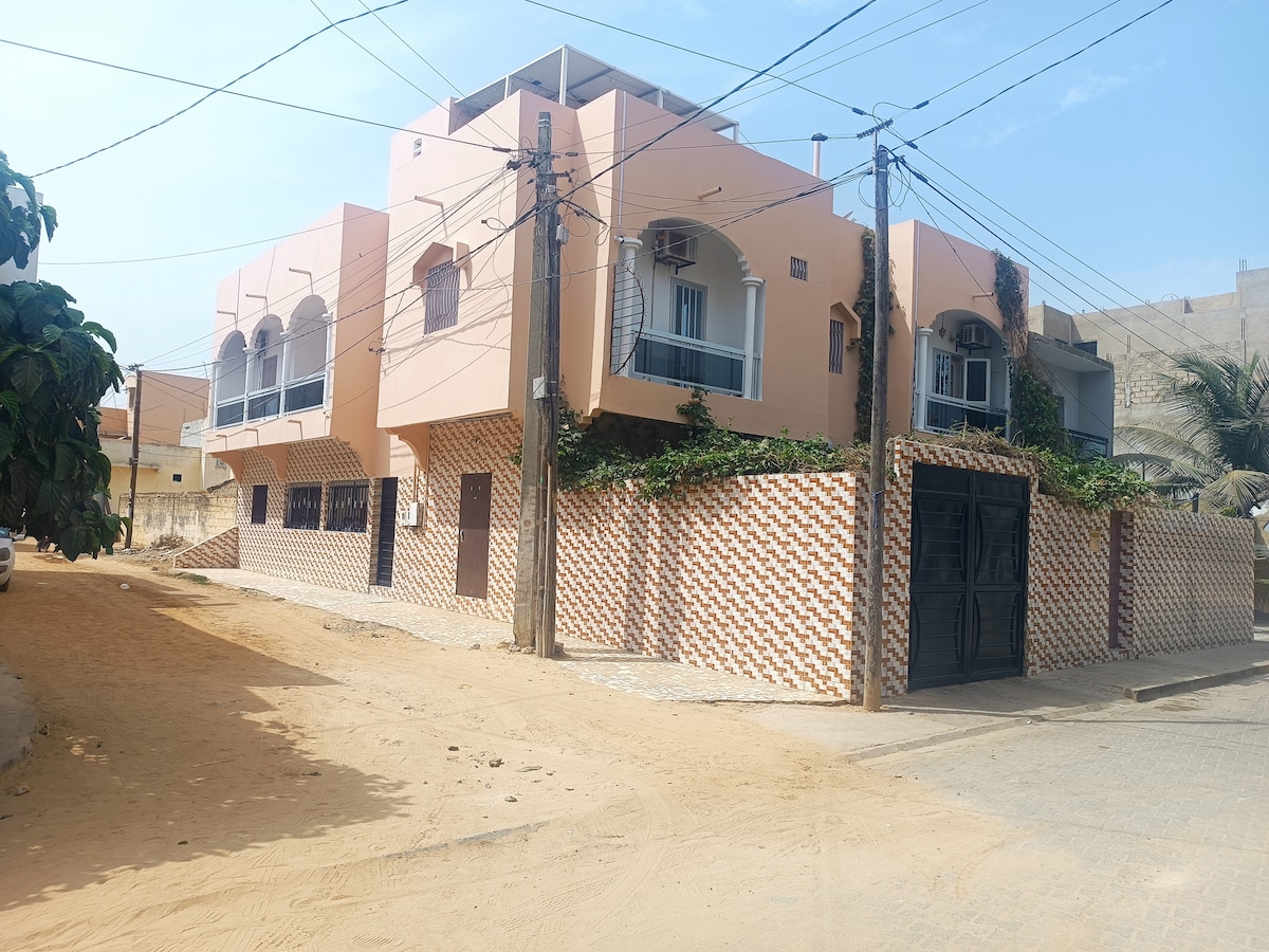 Our simple and modern apartment close to the sea welcomes you in the comfort of your stay in Hamo 4 Guédiawaye. You will have a unique experience away from traffic, in an authentic location. This apartment is equipped and is located on the 1st floor of a family house, offering you a beautiful view, in a secure setting.