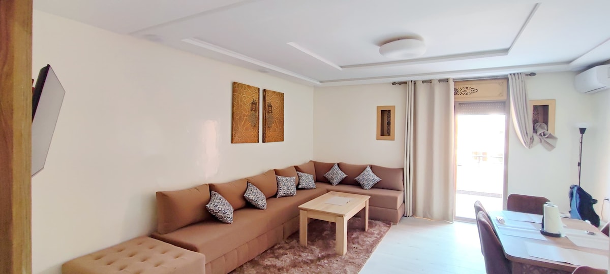 🌍 Great location: Just a 2-minute walk from Carré Eden and Plaza Centre in Guéliz. Modern 🛏️ comfort: - Air-conditioned bedroom with queen-size mattress - Bright European living room with balcony - Fully equipped American kitchen - Walking shower room Premium 📶 Amenities: New furniture, fast fiber optic, 2 Smarts TV with Netflix for your evenings. 🌟 Live an unforgettable experience in the hearts of Marrakech. Book Book now and let yourself be seduced!