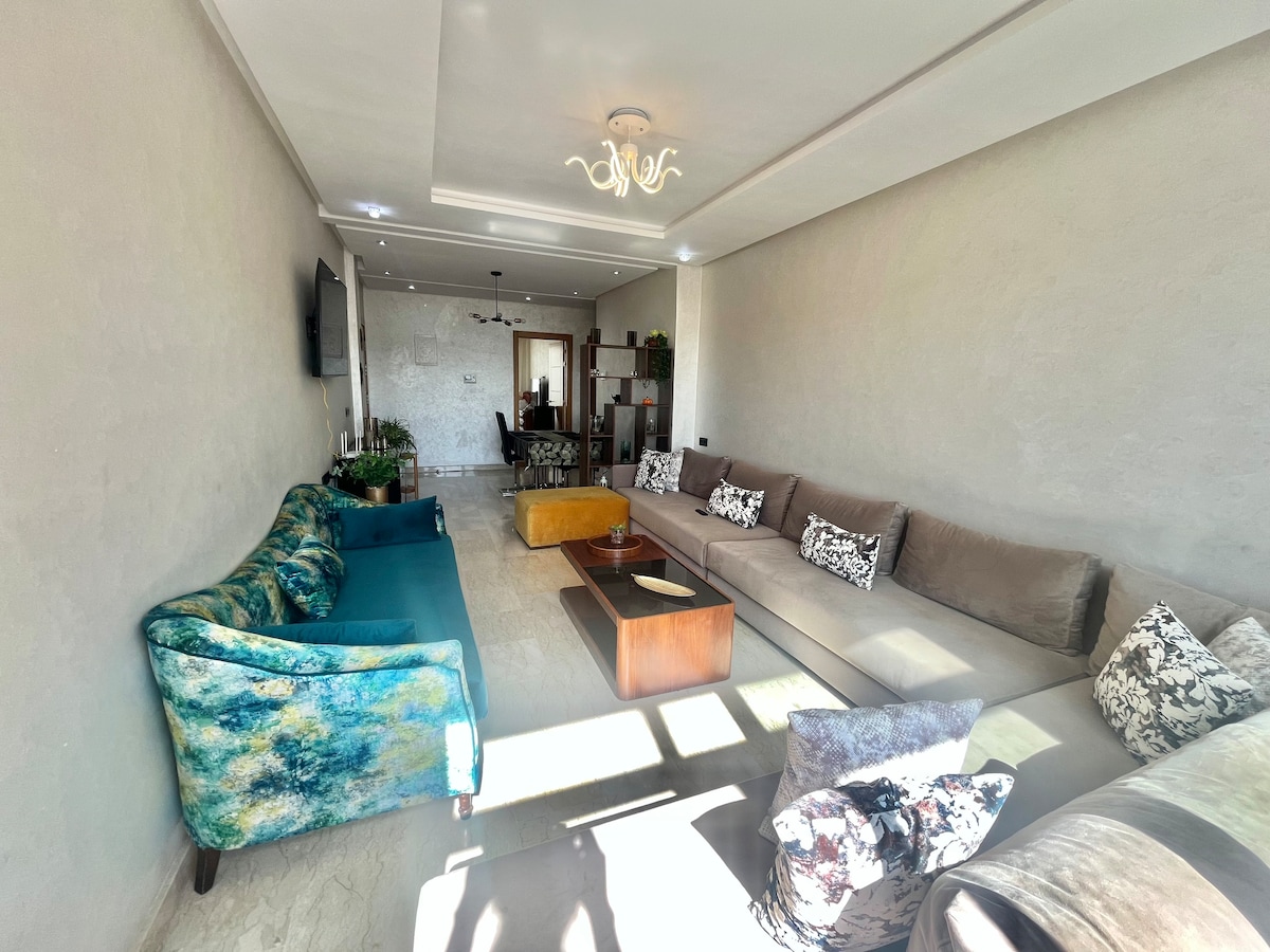 Our luxurious apartment of 96 m², with two bedrooms, large HD TV lounge, Wi-Fi and large terrace, is 7 minutes from the beach with a swimming pool all year round. Fully equipped kitchen (washing machine, dishwasher, utensils). Clean sheets and towels provided. Ideal location close to restaurants, cafes, banks, pharmacies, clinics, large shopping mall and a Marjane Market 50m away. Regular cleaning for a perfect stay. Book now for an unforgettable holiday