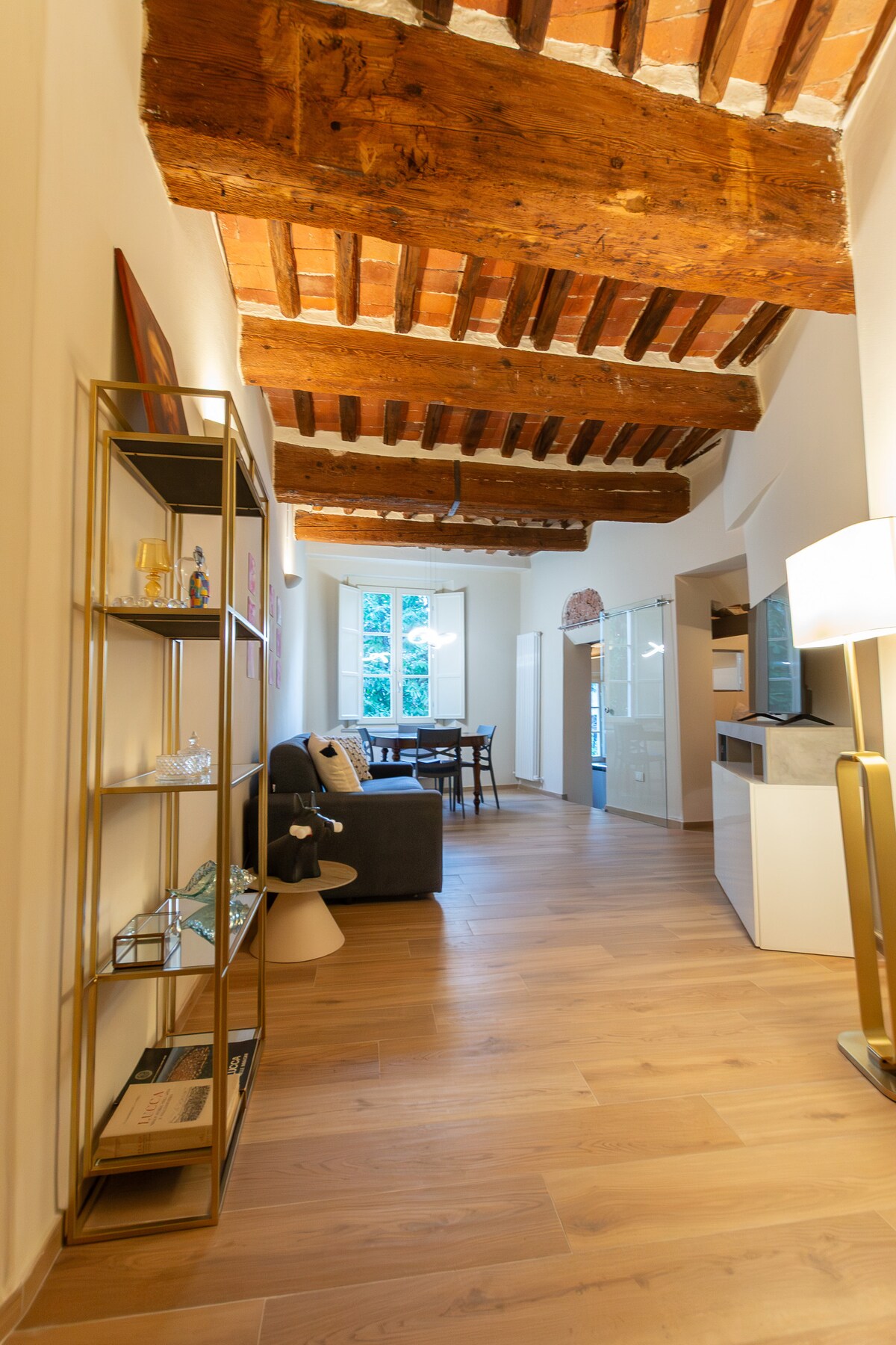 In un palazzo storico ( 1600) , terrazza con splendida vista sui tetti rossi di Lucca . Appartamento ristrutturato da designer, situato al 3° piano, dispone di tutti i comfort necessari per rendere il vostro soggiorno indimenticabile e caloroso. Situato nel centro storico di Lucca vicino a tutti i luoghi di attrazione, in zona tranquilla e non rumorosa; perfetta base da dove raggiungere in pochi passi tutti i luoghi di Lucca. Lucia è un host speciale che vi supporterà in modo perfetto.!