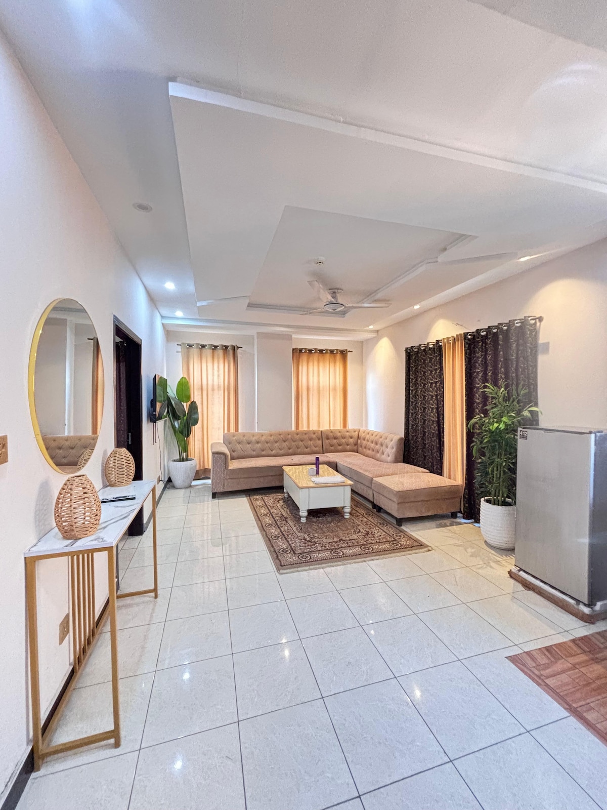 Marrakesh Four. First Airbnb designed for Overseas Pakistanis returning home. Floor-to-ceiling windows, plush furnishings, and a calm neutral palette create a warm yet international standard of living. ☕️ Enjoy spacious lounges, a modern kitchen, and serene bedrooms with balcony views Perfect for families seeking both luxury and familiarity in the heart of Pakistan 🇵🇰 Located just 7 minutes from Phase 7 Food Street, guests can enjoy a vibrant mix of local and international dining. 🥘