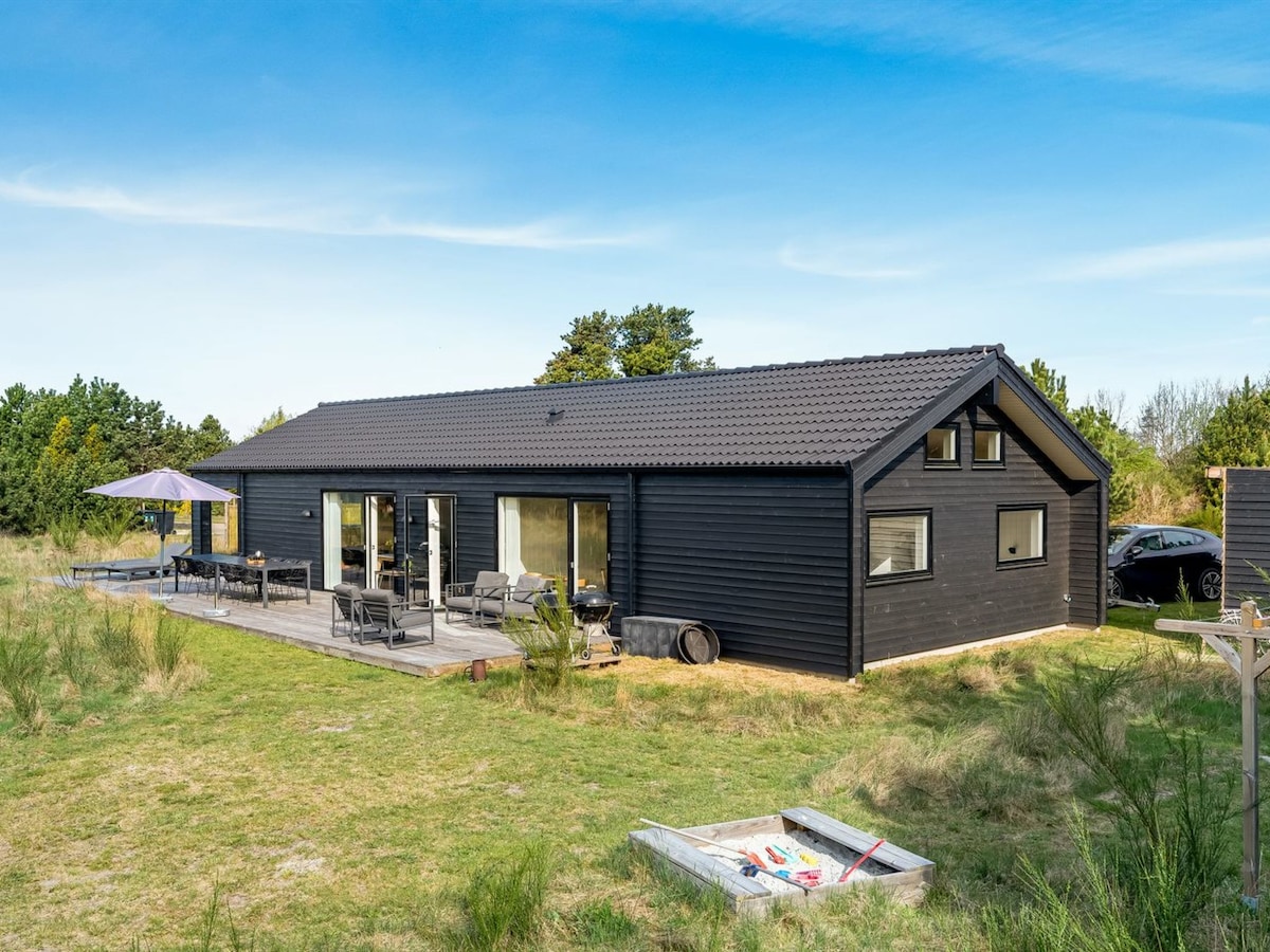 Beautiful newly built cottage from 2024 of 112 m2. Large bright kitchen-living room + living room. 2 bedrooms with double bed. 2 bedrooms with 2 single beds. 1 loft with 2 beds. 1 bathroom with shower. 1 bathroom with bathtub and sauna. Entrance. Large wooden terrace with wilderness bath. 1500 m to Denmark's best beach. 500 m to the center. 400 m to charging stations. Close to bowling alley, paddle court and shopping. 5 parking spaces. Note: Payment according to consumption: Water consumption: 100 DKK / m3 Electricity 5.00 DKK per kWh