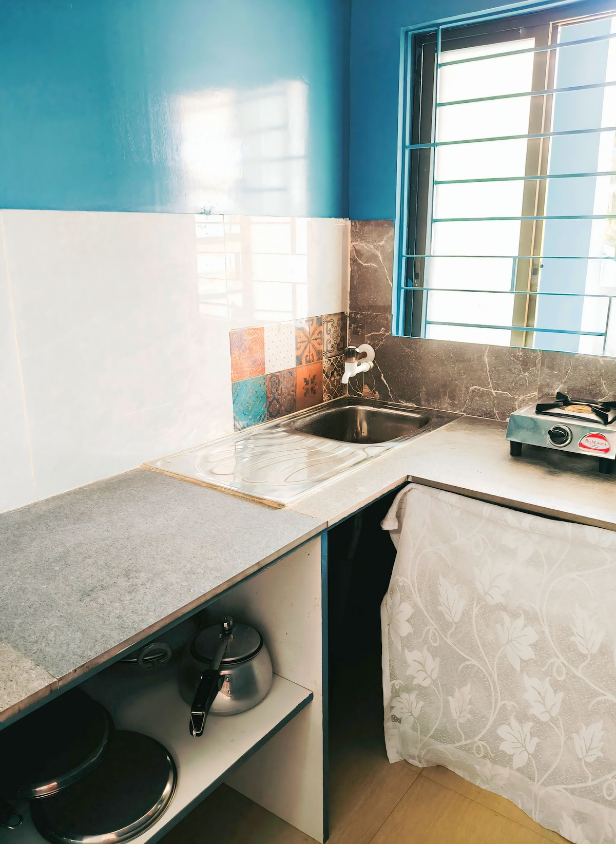 Welcome to our charming 1BHK homestay. It is a 2BHK unit converted to 1BHK for 2person booking. Completely private and no shared space. The 2nd bedroom remains locked so that the guests don’t have to share the space. Located at the 2nd floor of a G+2 building (no lift facility). The space features a tastefully furnished bedroom, a cozy living area , a well-equipped kitchen and a dining area creating the perfect blend of style and convenience.