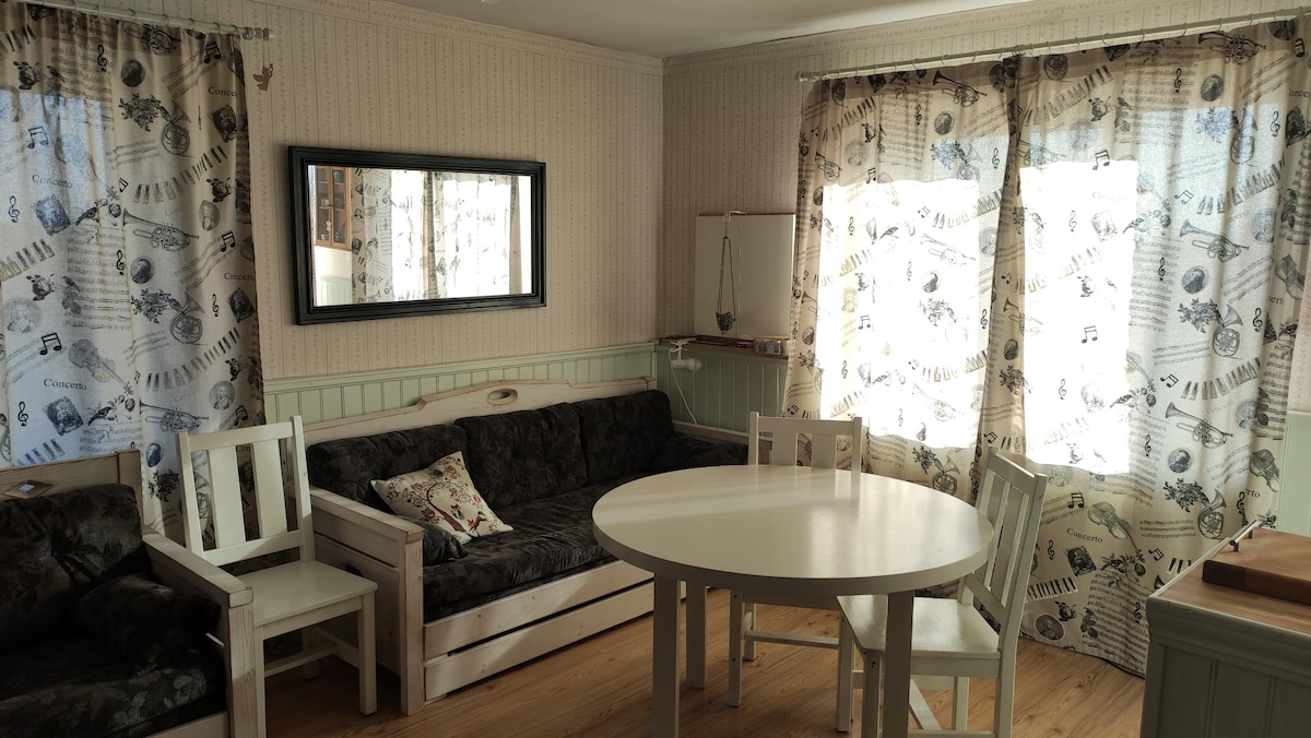 A simple, almost ascetic, but properly equipped studio apartment for one or two peaceful and undemanding people in the center of Haapsalu: 26 m2 on 3rd floor. 2 separate sofa-beds (bed linen sets are in the cupboard). Green streetview at summertime, smart-TV, WiFi, kitchenette, fridge, plates, cups and wine glasses, toilet with small shower-cabin. The sink is in the kitchenette. Everything is near, not more than 1,5 km. Located a little away from the noise epicenter during events.