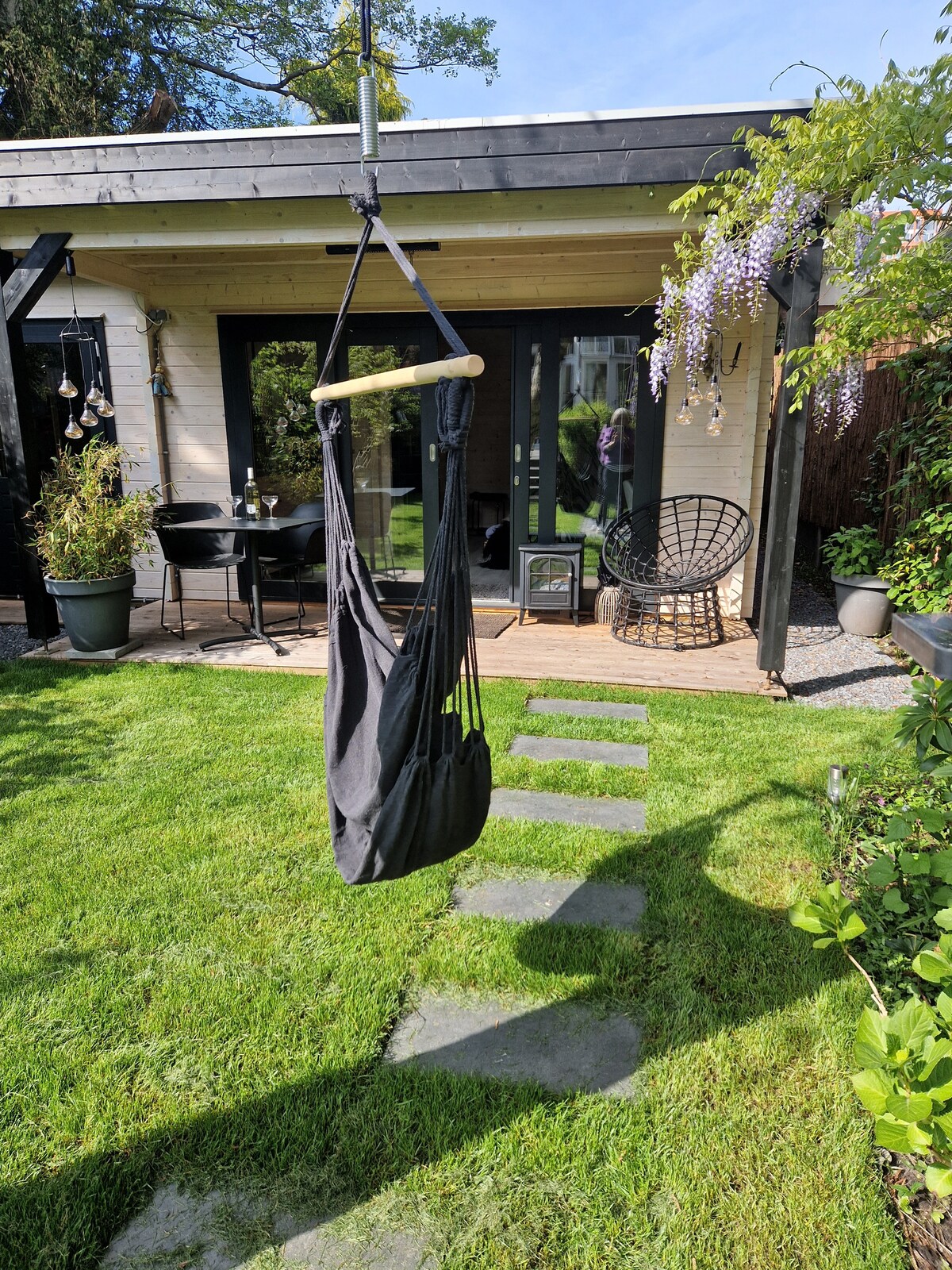 Luxury upgrade 2022! Cosi private boutique room with bedroom and kitchen island close to the sea, centre and train station. Floor heating system and kitchen with induction plate, refridgerator and combi microwave. Bathroom with walk in rain shower. Only 500 meters from the sea and 50 meters to Restaurant and shop. A private patio is available for outside breakfast/diner. The garden can be closed off and the Jacuzzi (39°C) and Sauna can be booked for a part of the day.