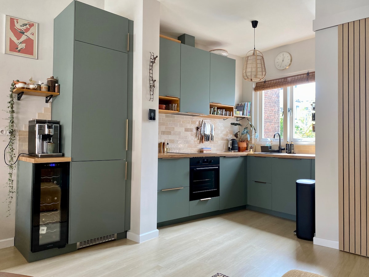 Townhouse M&F is located near the city center of Haarlem (2 min), walkable distance from the dunes and bikable distance from the sea. It has two bedrooms with down duvets and pillows, a living room, a kitchen and a bathroom with bath and separate shower. The apartment is totally renovated and has a new kitchen. It has full privacy. It is located close to the railroad and the railway station, Amsterdam Central Station only 15min. The apartment is on the first floor.