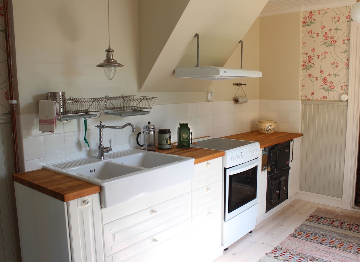 The house, a lovely summer dream with carpenter's joy, is located in the pleasant village of Hagelsrum, 5 km from Målilla. It was built in 1907, carefully renovated, bright and welcoming. Apple trees, peonies and lilacs. A little further down, the Silverån river winds its way. The pastures outside the plot extend far and make the landscape sunny, bright and beautiful. There is plenty of forest where you can wander around, pick berries and mushrooms, enjoy coffee in a thermos with a sandwich, listen to the silence and feel the scents of the forest.