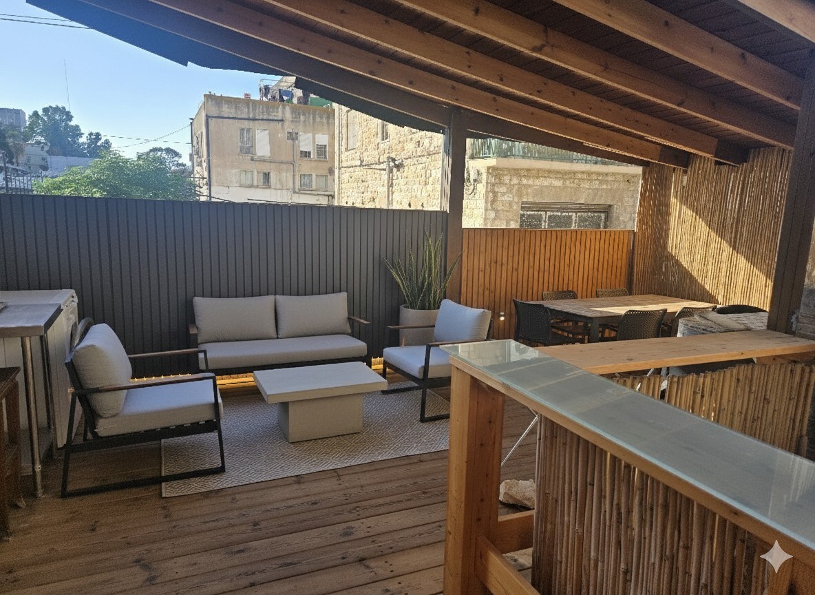 An amazing new boutique apartment by CASA CARMEL at the best location of Carmel Center. Newly renovated and very spacious apartment with a beautiful balcony equipped with air jet hottub, hammock and sitting area. The unbeatable location is at walking distance from EVERYTHING you need - restaurants, pubs, Bahai Gardens, supermarkets, shopping center, transportation and many of Haifa's most famous attractions. Located in historical building surrounded by a natural grove. Shelter available nearby.