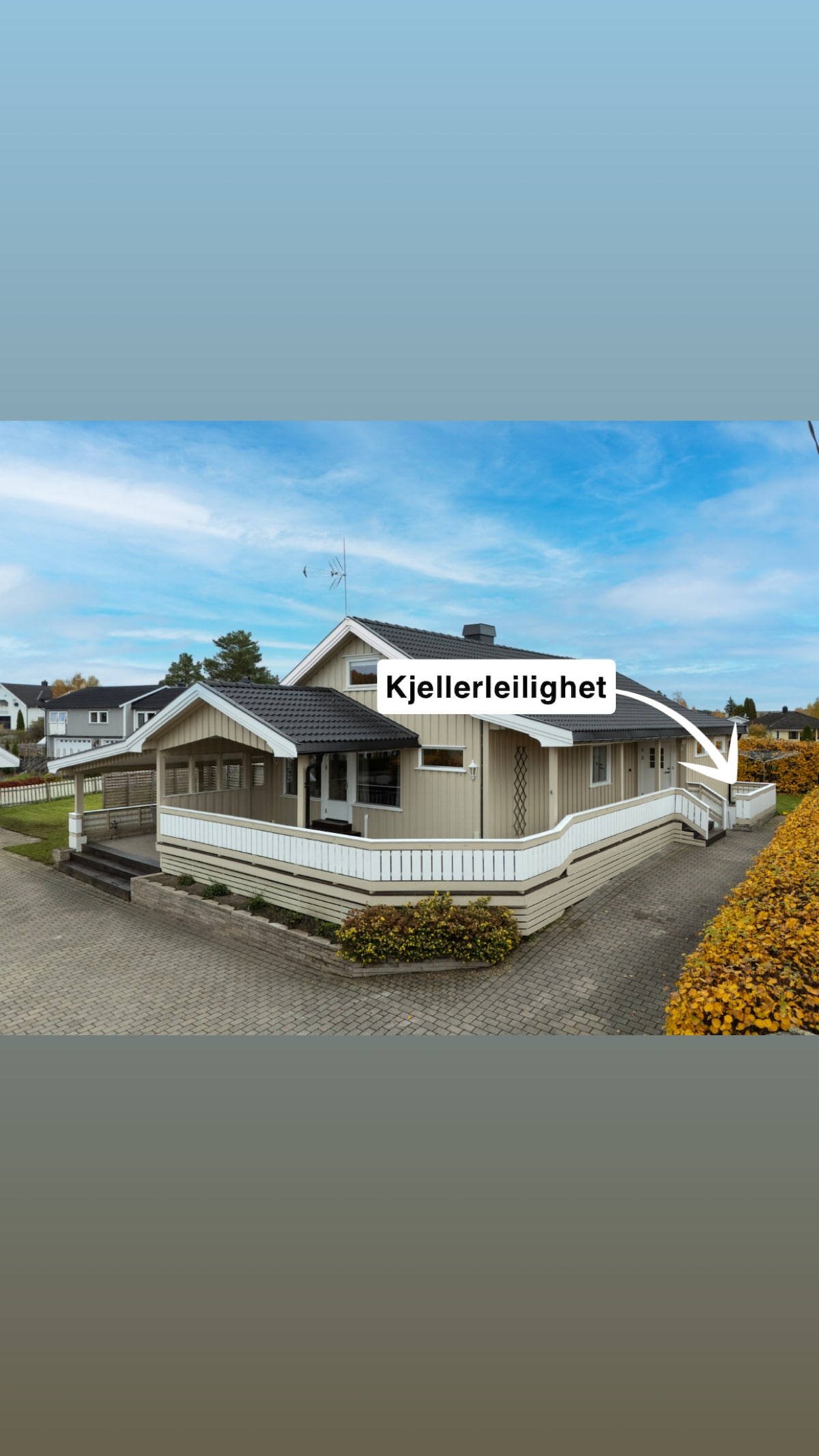 A 2019 apartment with large bathroom, bedroom and living room/kitchen solution. Private entrance from the back of the house, and access to parking on the front of the house. The rest of the house is inhabited by us, and we have three children who can produce some footsteps. Otherwise, the studio is separated from the house with a fireproof and soundproof door, which is locked with a key. TV only has the option of AirPlay, and no apps/channels
