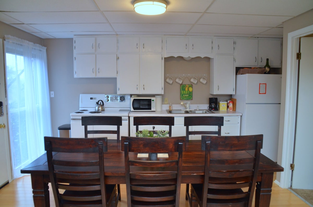 Private studio apartment with a full kitchen, full bath, and king sized bed that overlooks the backyard pool. This apartment is in the basement level of a home, but is private inside. Please use extreme caution with children under 12 in this listing due to the close proximity to the pool and other factors that are specific to this listing. Please note the upstairs listing may have children staying. There’s one king bed and a twin pull out bed. *No parties rule strictly enforced*