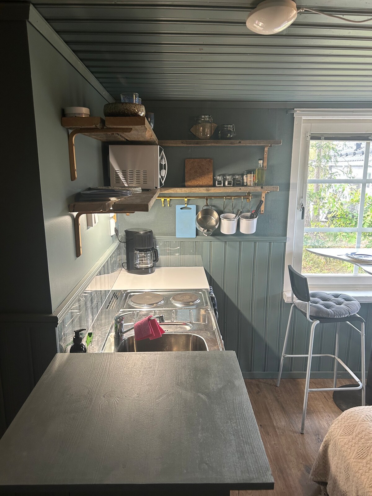 Welcome to this bright, modern studio! Enjoy the sun on your patio with a river view and the small private beach and dock. Karlstad city center is 8 km away, and a shopping center with grocery store is just 5 km from the property. Includes an oven/microwave combo, hot plate, fridge/freezer, and a smart TV. Double bed (160x200 cm) and an air mattress. Bed linens and towels are included for your convenience. Guests are responsible for cleaning unless otherwise agreed with the host 🌸