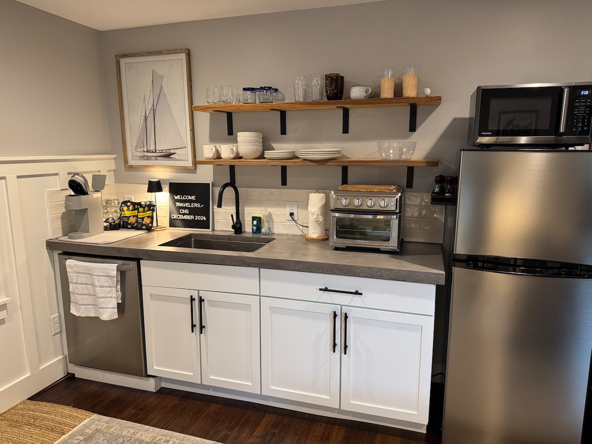 This newly built carriage house is separate from the main house. The cottage is about 1,200 sqft so it very open and spacious and great views of marsh and our tidal creek. We have a separate work area with desk and a massive dinning table if you need more room to work or to gather with friends. Full kitchen, washer and dryer, massive shower, the list goes on. You may not want to leave! Feel free to go sit and have coffee or cocktails on the dock. PERMIT# OP2025-06925