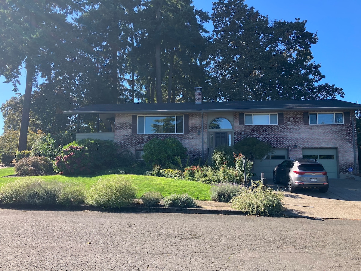 Guests tell us they love the view! They also mention this downstairs apartment is very clean, spacious, comfortable and relaxing, with great wifi too! • 750 square feet of privacy, including a private balcony • Full kitchen, queen size bed and fast wifi • Leather furniture, large screen TV with HDMI capability (streaming only) • Private staircase leads to your garage entrance. No shared spaces. Garage entry. Level 2 EV charger (let us know ahead) Clackamas County License #108