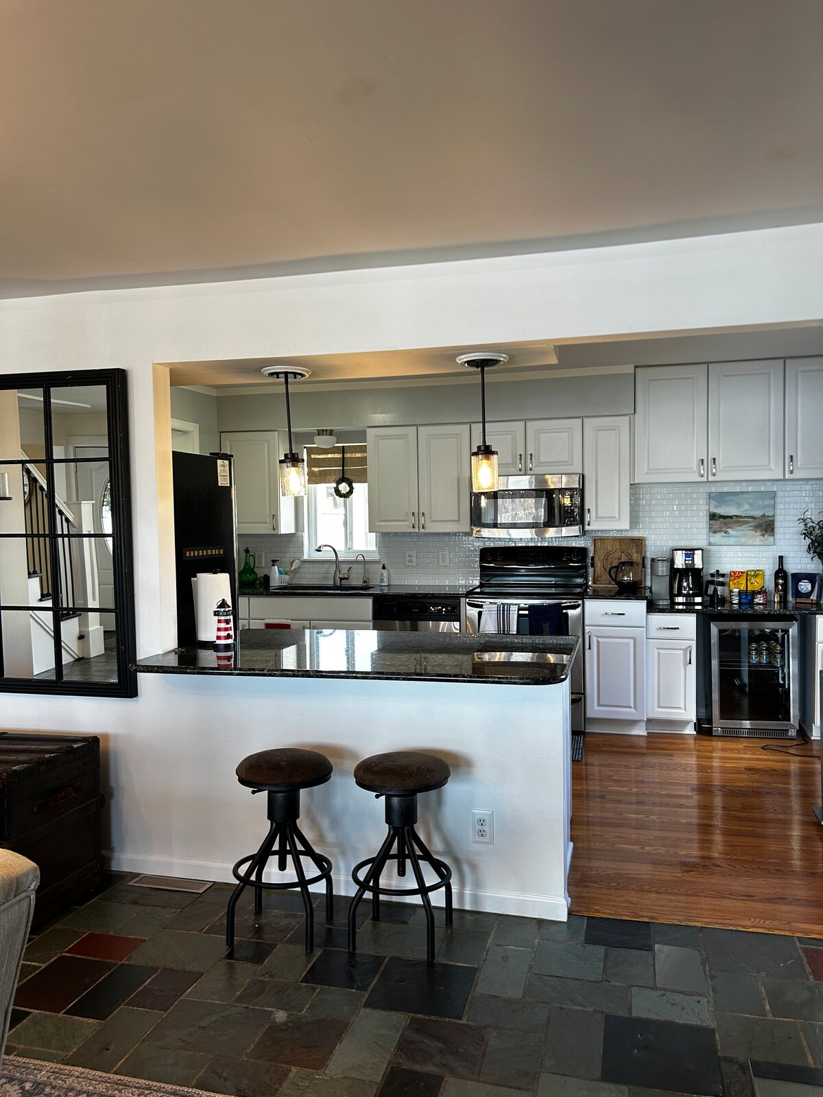 Enjoy a special experience in your luxury, private one bedroom flat, located in charming downtown Milford. While apart of a triplex, you will have your very own flat that includes everything you will need to have an outstanding stay. This recently remodeled flat includes an open floor plan with a well equipped kitchen, inviting living room, spacious bedroom with a queen size bed and even an over-sized desk so that you can "work from home", and a "to die" for bathroom. Two blocks from Mainstreet.