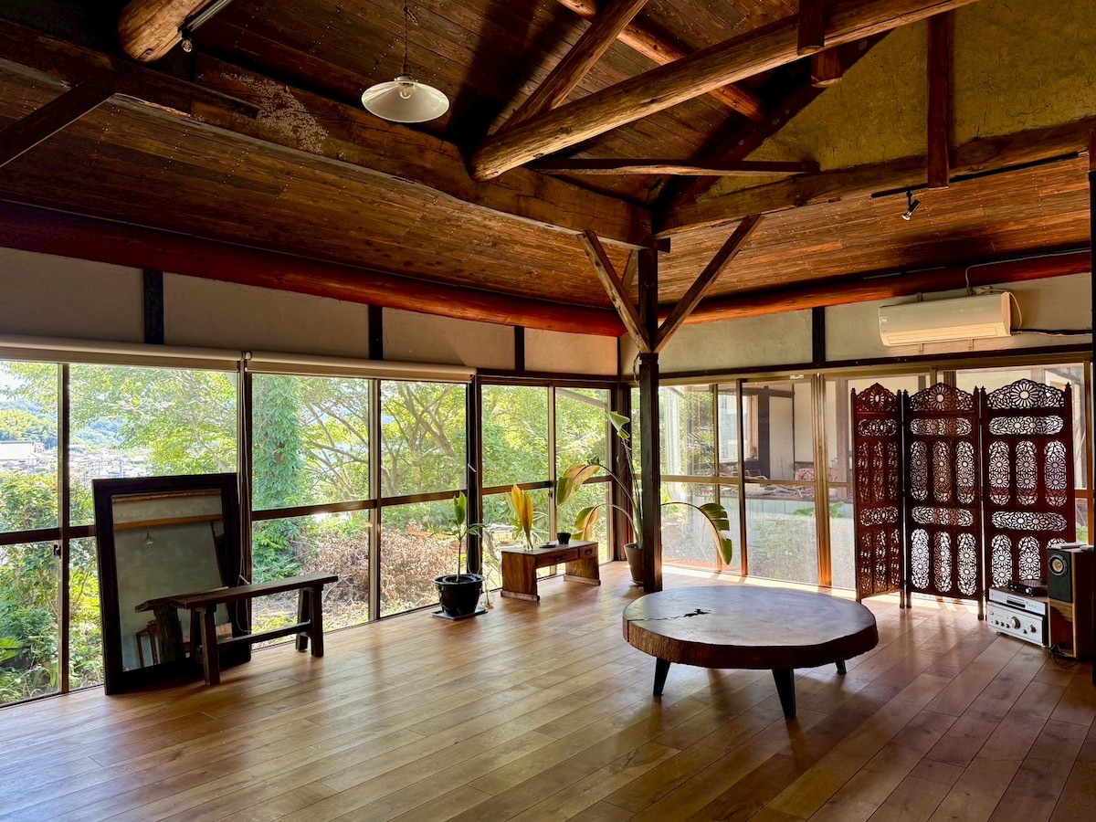 Toyotake Yashiki is a historic building built over 130 years ago. The corner of the space, which is cut off by the longhouse gate and the wall, It's a place where you can experience the feeling of time slipping away. This house, which has been preserved in its original condition without sash windows, When you open the wooden frame storm door and sliding door, a pleasant breeze blows through. Located in the eastern part of Suo Oshima, surrounded by the sea, it is particularly quiet and peaceful. and all you can hear is the sound of birds. A little distance from the busy everyday life, in this special space, Why not spend a special time thinking about eternity?