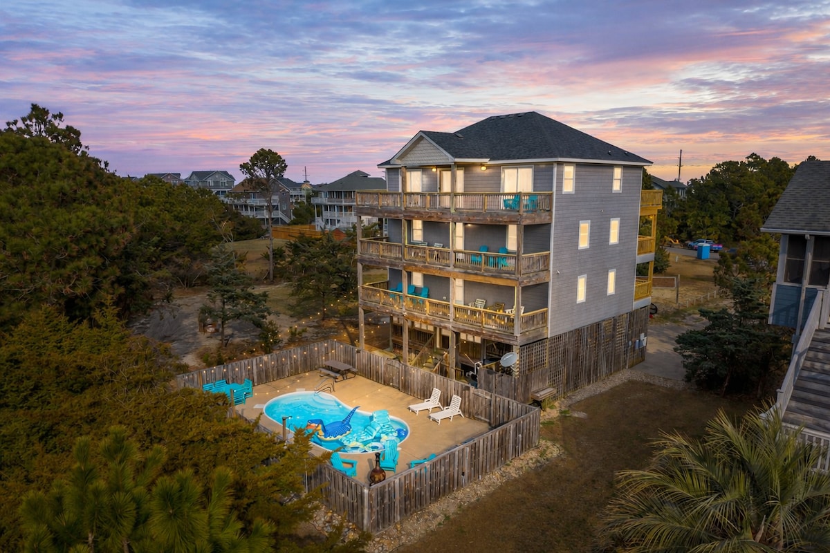 Relax at this magical and peaceful luxury oceanfront home. Brand New Heated pool with direct access to the beautiful beach along the acclaimed Cape Hatteras National Seashore, and minutes from all the shopping, dining and entertainment that the tri-villages has to offer, "Lost on Colony" offers the perfect location!! 4 bedroom, chefs kitchen, high end bedding and linens and newly updated furniture and beautifully decorated. You won’t want to leave! Pool Heat $75/day
