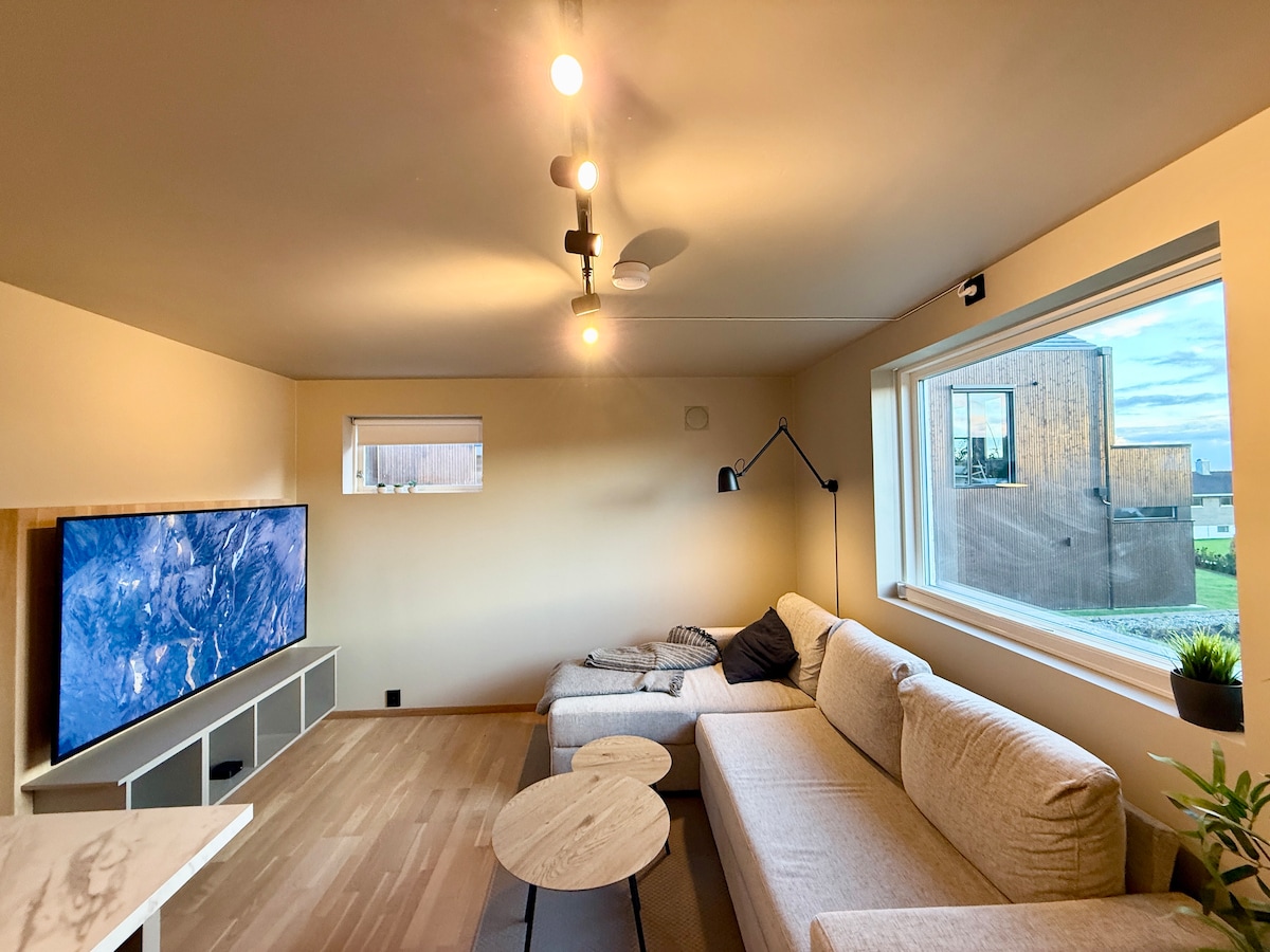 Welcome to our brand new apartment in Haugesund. Designed with the highest standards, this stylish space features a fully equipped kitchen, a cozy living room with a comfy sofa(bed), and a warm bedroom with high-quality bed. Enjoy the Smart-TV with chromecast, Sonos sound and your own washing machine. Relax in your own outdoor seating area with private parking spot. Located in the popular Solvang neighborhood, just 10 min. from Haugesund centrum and 7 min. from Norway's finest hiking area!